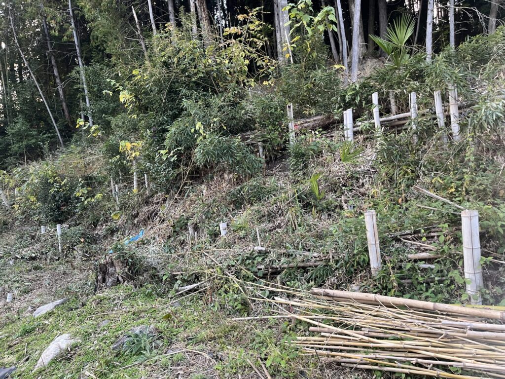 以前は遠方の地権者(最終的には相続関係者が大阪、京都、神奈川の4氏であることが判明)が所有し、50年近くにわたって全く管理がなされていませんでした。関係者と交渉を重ね、それにより里区が該土地の共有名義人となった時から少しずつ整備してきました。