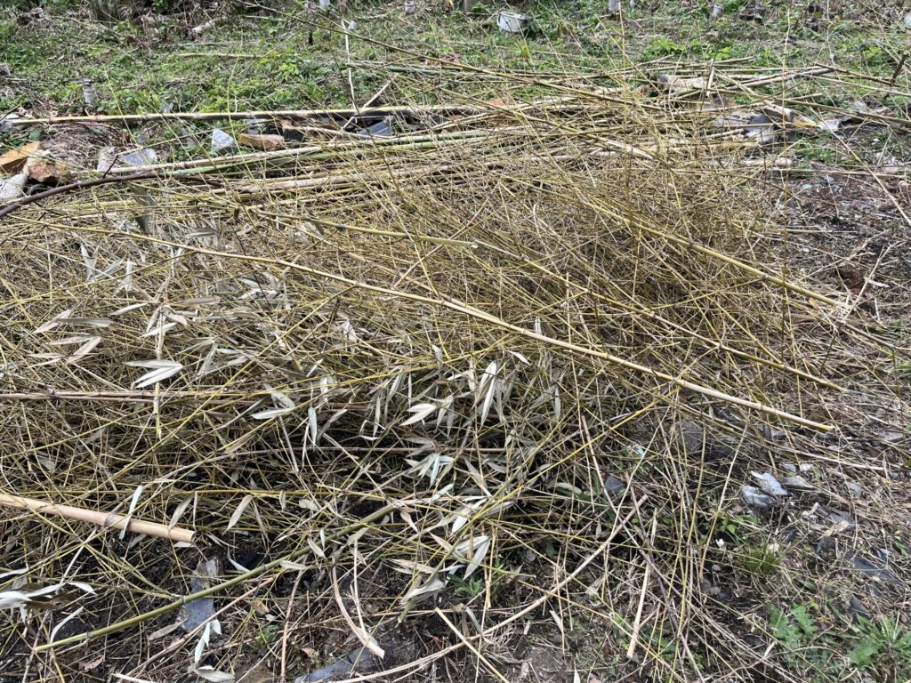 以前のブログでも述べたように、一番の課題は竹の駆除です。笹が生えてくる前に伐採しないと作業が大変になります。下の写真の様に竹は大変自己主張が強く厄介です。一般に竹林を退治するには7年かかると言われていますが、その間さえ頑張れば後は草刈り等の作業で済むことになるでしょう。
